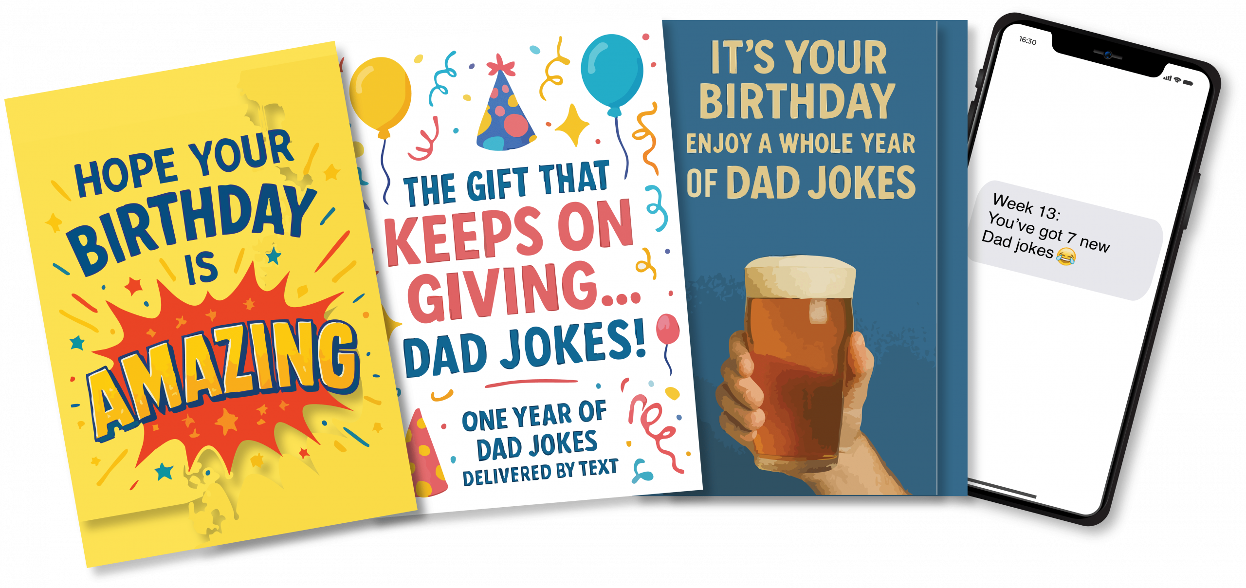 📲 with 7 awfully good hand picked Dad jokes delivered each week by text for a whole year (365 jokes in total!)